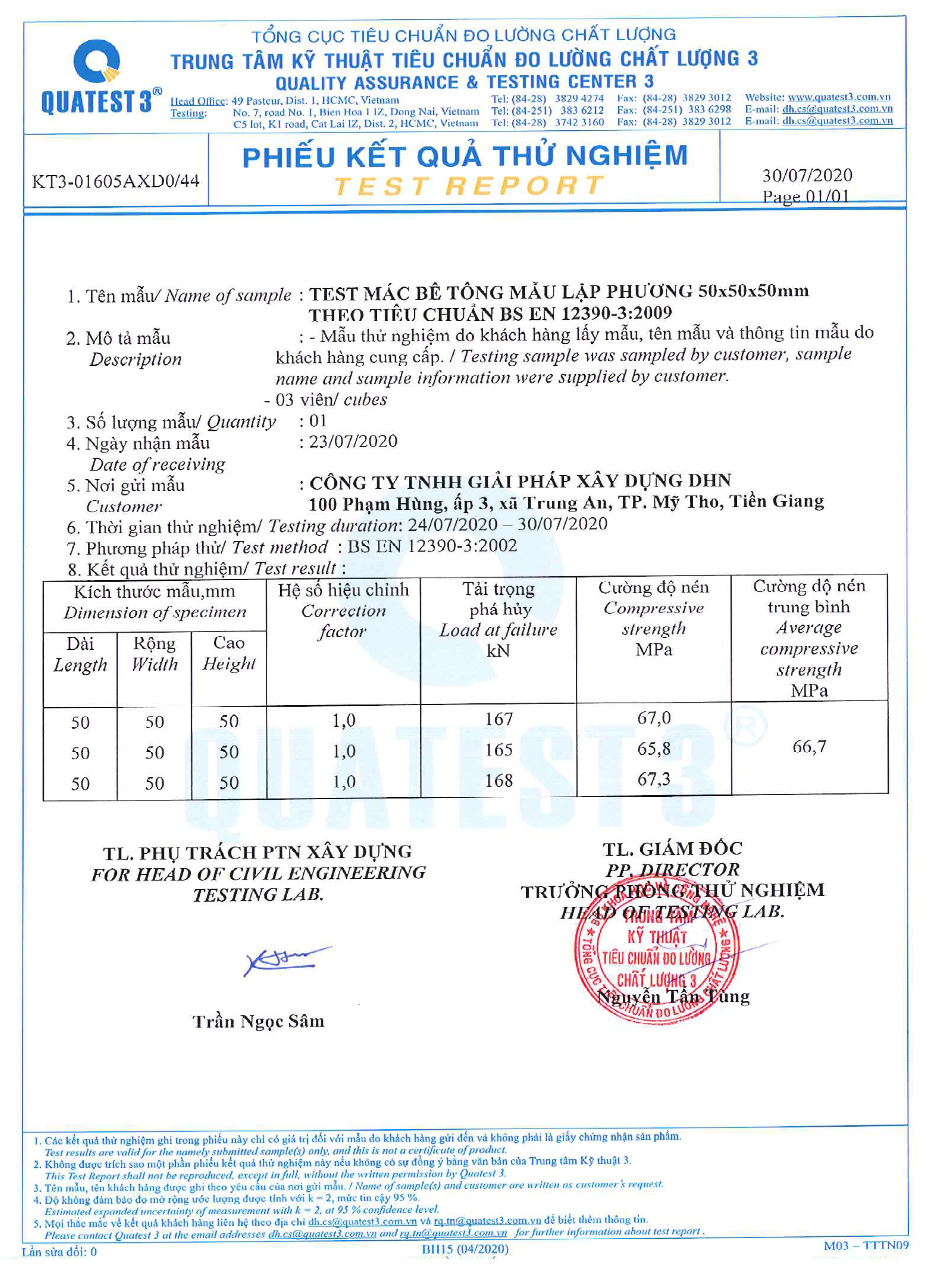 - Size of cubic test : 50x50x50 mm